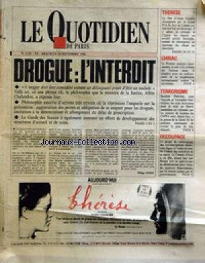 DROGUE - L'INTERDIT - THERESE - LE FILM DE ALAIN CAVALIER - CHIRAC A LA TRIBUNE DES NATIONS UNIES - TERRORISME - IBRAHIM ABDALLAH - ANIS NACCACHE ET VAROUJIAN GARDIDJIAN SONT EN PRISON A LA SANTE - LE DECOUPAGE DES CIRCONSCRIPTIONS ELECTORALES.
