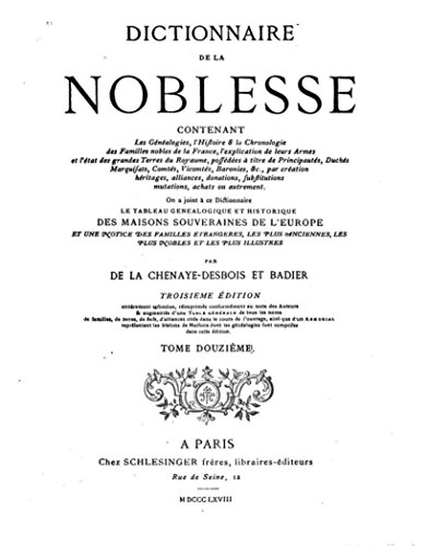 Dictionnaire de la Noblesse, Contenant les Généalogies, l'Histoire and la Chronologie des Familles Nobles de la France - Tome XII by Aubert de la Chesnaye-Desbois.